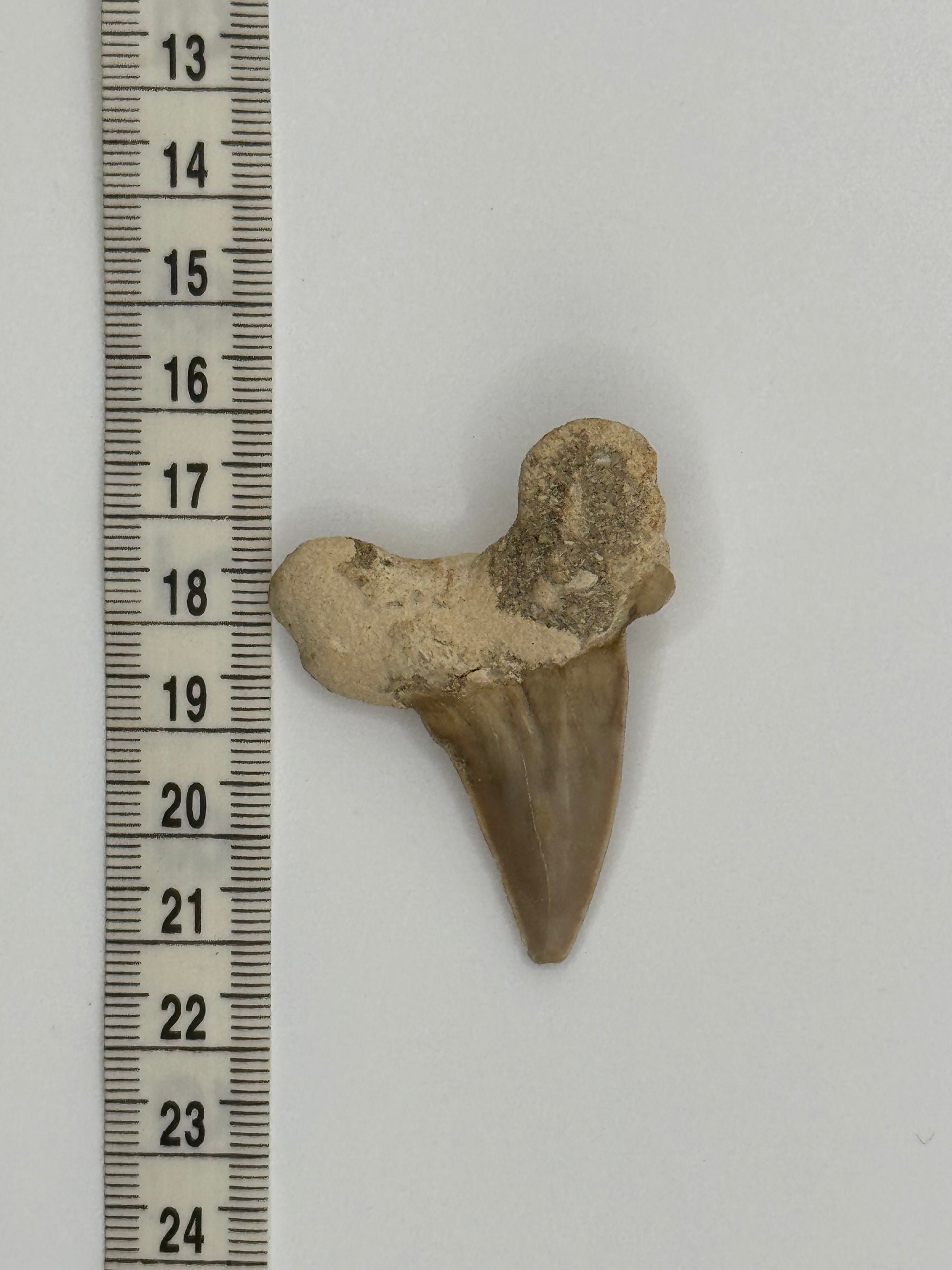 Fossil teeth of this shark have been found around the world. This tooth is from Morocco and is approximately 65 million years old.